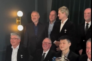 晚宴过程中,赵心童与亨德利、达赫迪、罗伯逊、墨菲、宾汉姆、戴维斯、泰勒、帕洛特、艾伯顿等世界冠军合影留念。