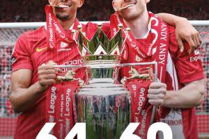 英超历史后卫助攻数前二:阿诺德64次,罗伯逊60次